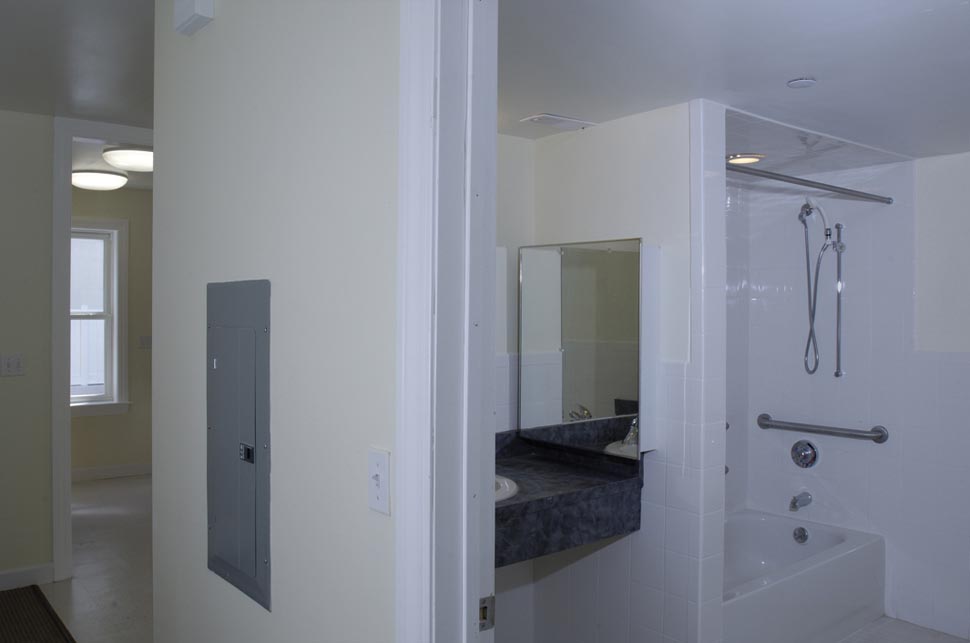 An existing house facing Taylor Street, originally constructed c. 1875 as a two family dwelling, was restored on the exterior with historically appropriate materials and details and completely renovated on the interior to provide four apartments with two new interior exit stairs. Damaged in a fire shortly before construction began, the wood structural framing was reinforced, insulation and new energy efficient building systems were installed, along with an automatic sprinkler system. A new structure containing four multi-story townhouses, two of them with garages, and two wheelchair accessible flats with entry porches was built facing Mission Street. The new building was designed to be sympathetic in form, materials, and details to the existing historic house and the surrounding residential neighborhood. A parking lot with driveway access from both streets is located in the center of the site, which is enhanced with extensive landscaping.