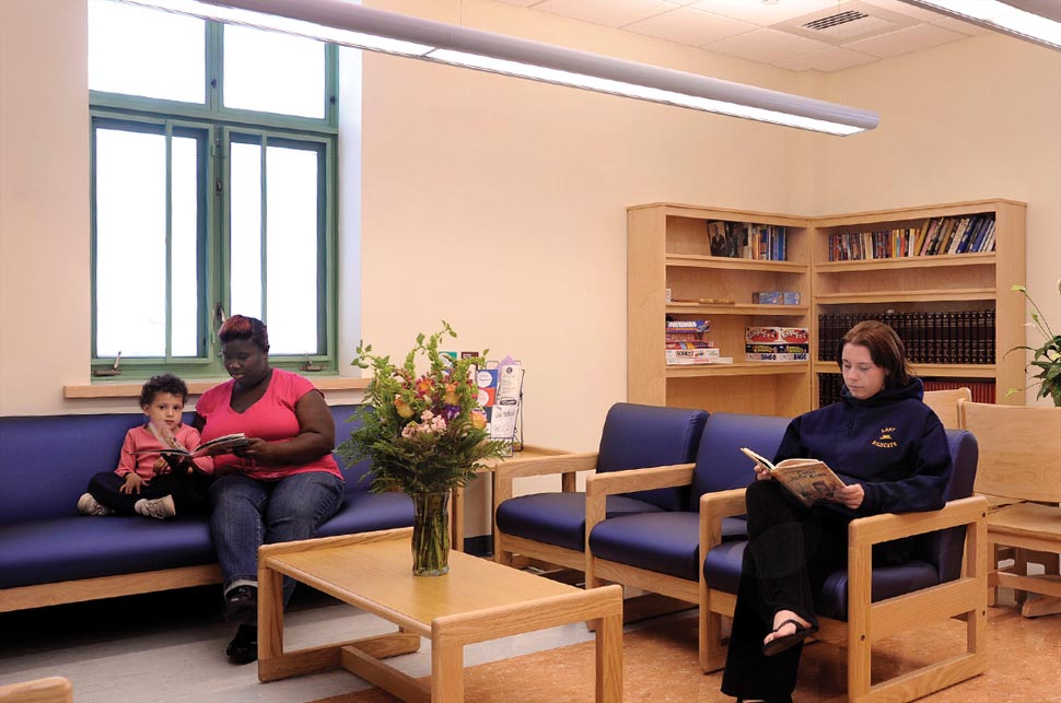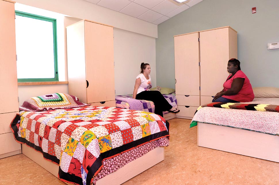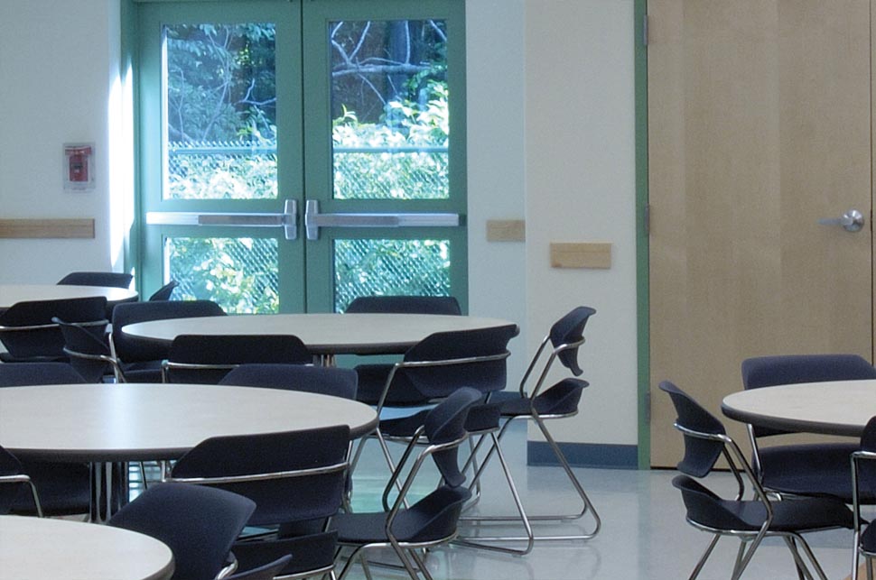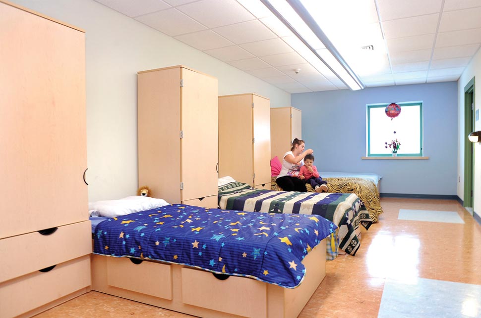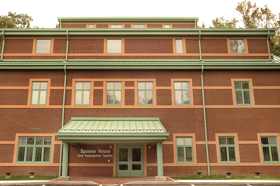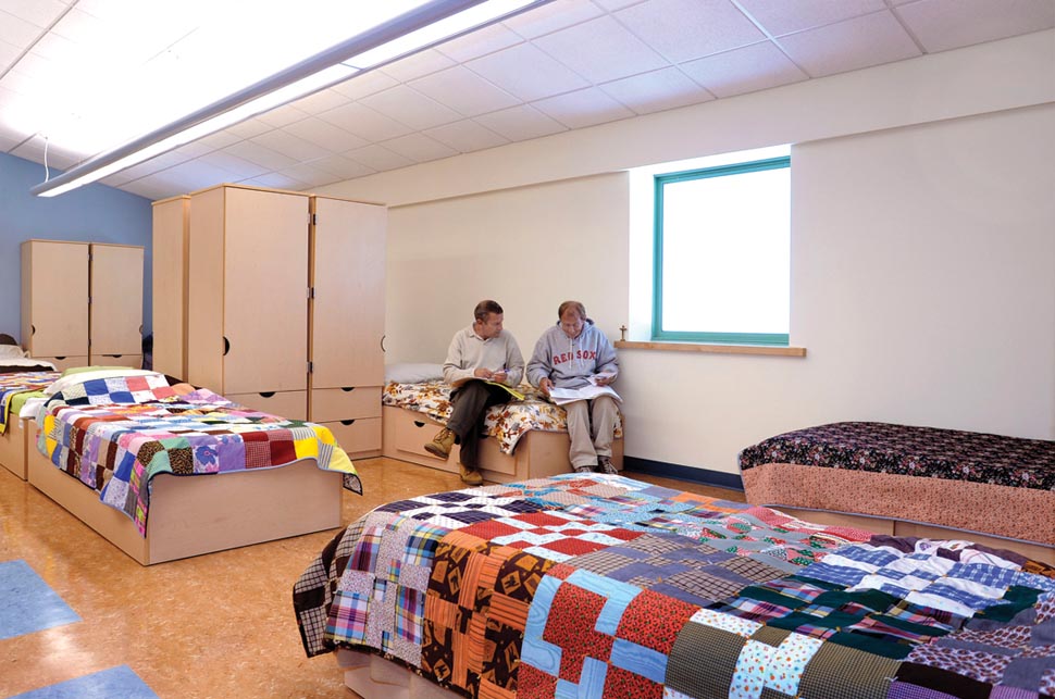With no land, building, or funds to provide for their clients, the group of 17 cooperating religious congregations (ACT) needed help to find a new home. O’Riordan Migani Architects assisted ACT in finding and evaluating potential sites, making public presentations to address NIMBY opposition to the project, writing grant applications to fund the pre-development and construction phases, and finally serving as the architect to implement the construction of a new three-story building. The new facility houses a full range of emergency assistance services for individuals and families, including a food bank, educational and support programs, referral to medical and other services, as well as emergency housing. The first floor contains the administrative and intake offices, a meeting room for the board and volunteers, and the food bank. The second floor has the dining room and commercial kitchen, where the 17 participating congregations prepare and serve meals each evening, lounge and computer areas for residents, a supervised children’s playroom, resident storage lockers, and classroom space. Because the site has a fairly steep slope, the second floor provides grade level access to a backyard featuring a porch off the dining room and a children’s play area. The top floor includes a men’s and a women’s dormitory with bathroom and shower rooms, and two smaller sleeping spaces with residential bathroom. The latter can be used for mothers with infants or families that may want to stay together after a house fire or other emergency. The sleeping rooms all have sloped cathedral ceilings to recall the image of an attic bedroom and ameliorate the institutional form and scale common to shelter dormitories. The central corridor on the third floor is capped with a gable-profile light monitor to bring daylight into the circulation space and reiterate the house-like gable motif. Materials were selected for minimum maintenance costs, and the color scheme was worked out with the staff psychologist to promote feelings of dignity, self-worth, and hope for a better future.